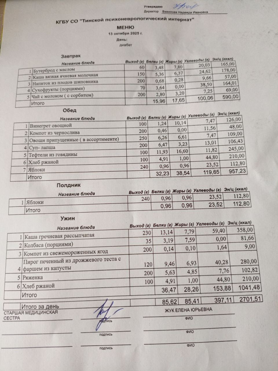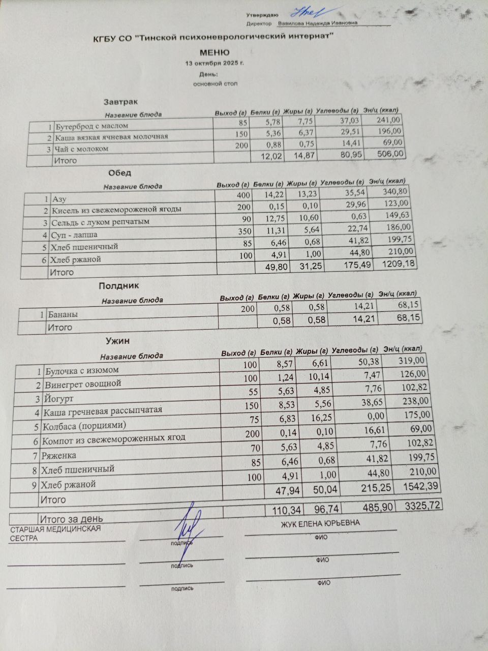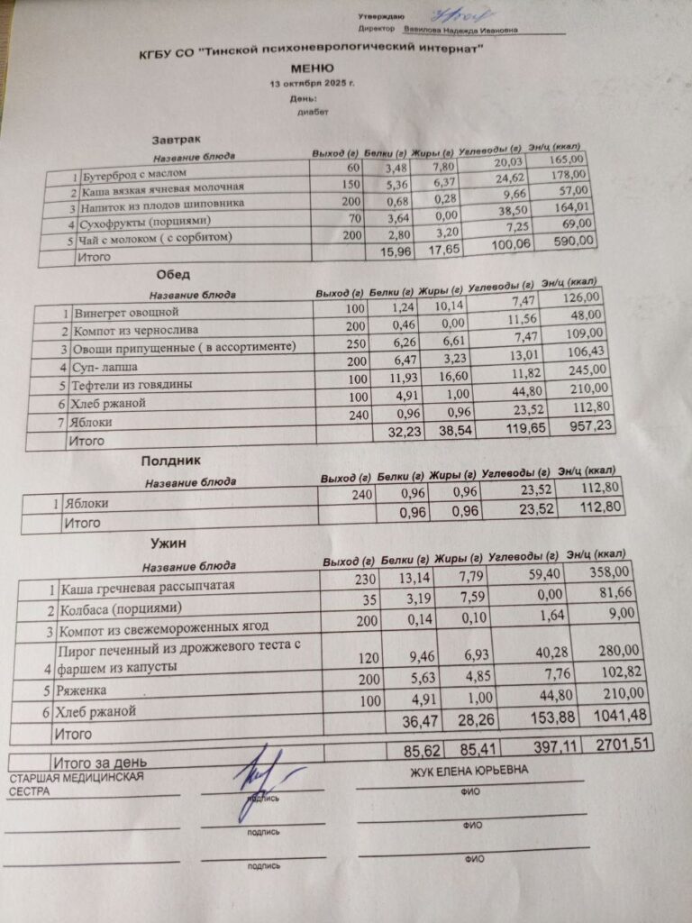 • Питание за 13.10.2025