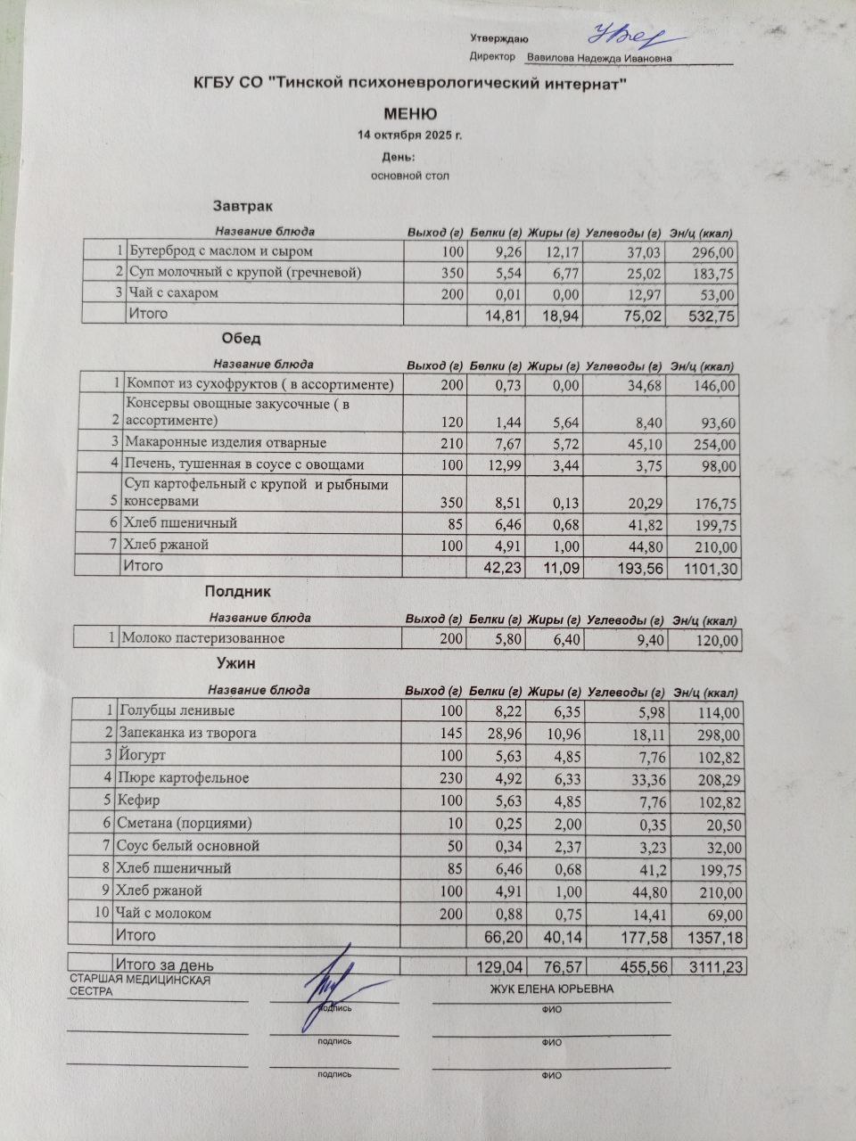 • Питание за 14.10.2025