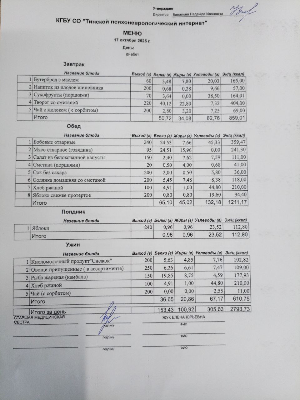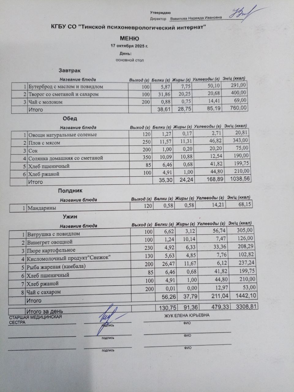 • Питание за 17.10.2025