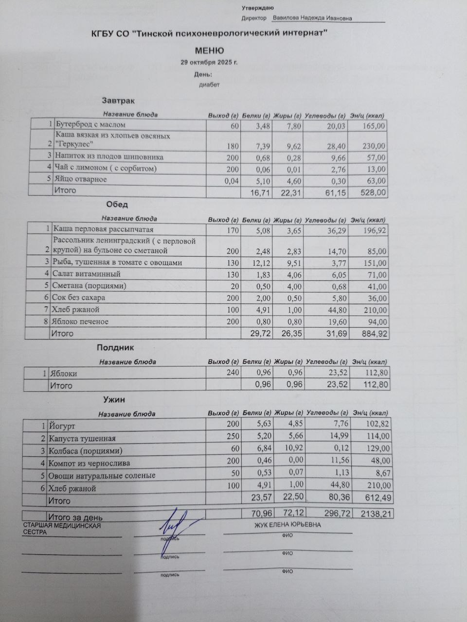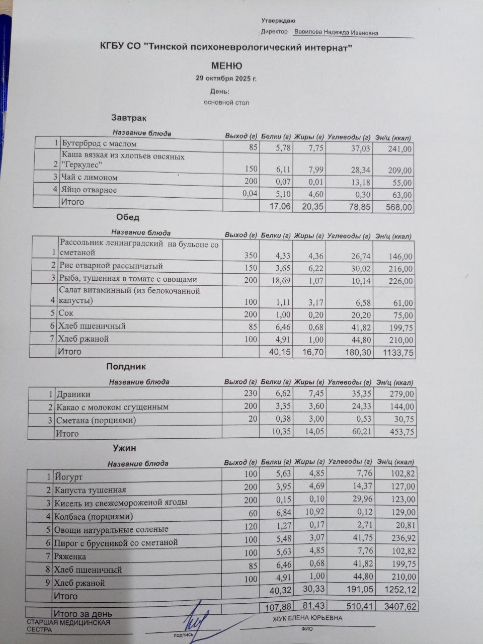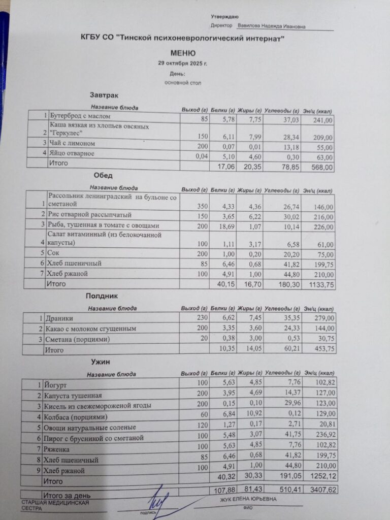 • Питание за 29.10.2025