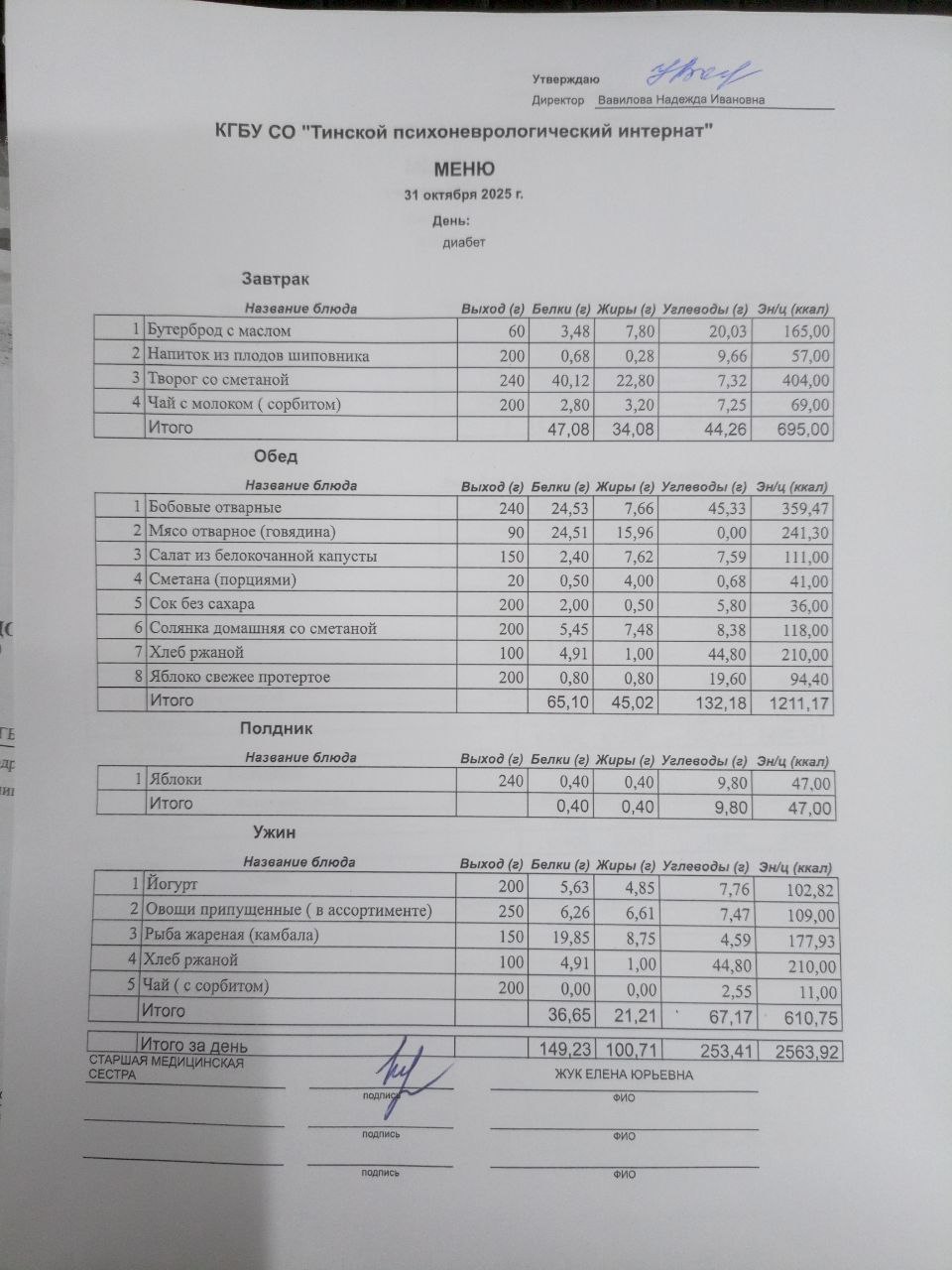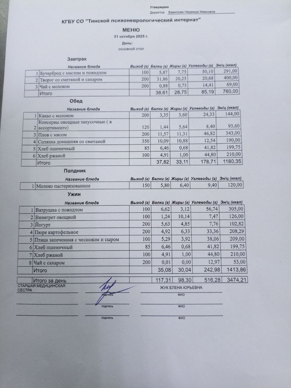 • Питание за 31.10.2025