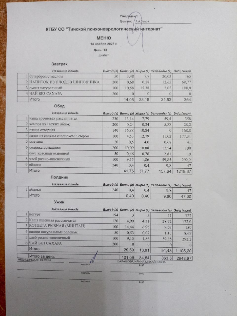 • Питание за 14.11.2025