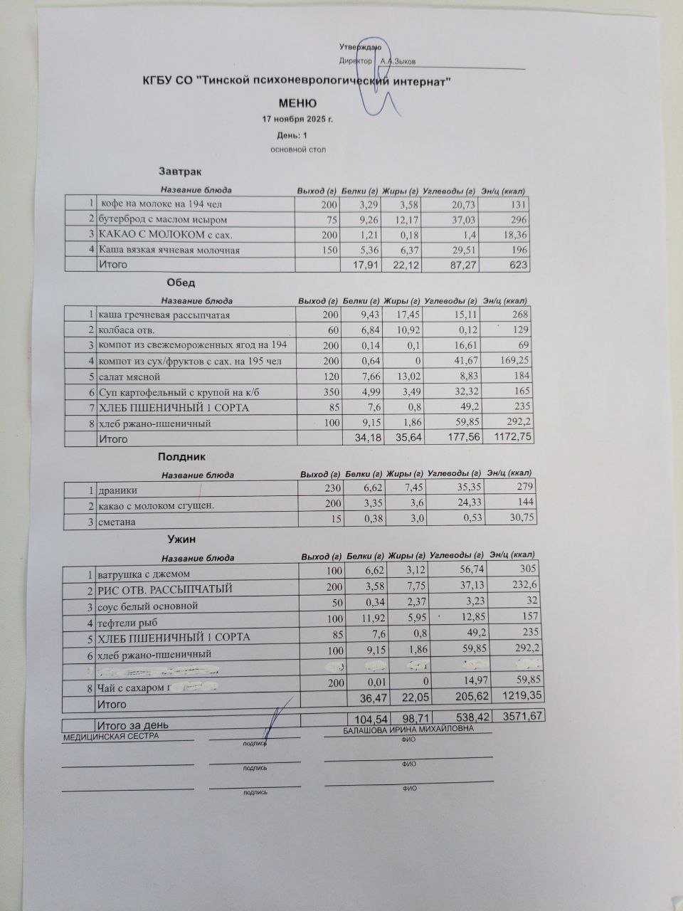 • Питание за 17.11.2025