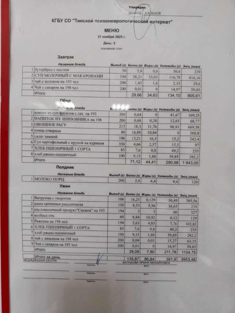 • Питание за 21.11.2025