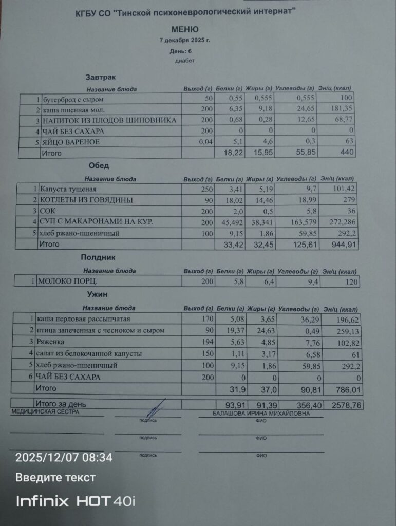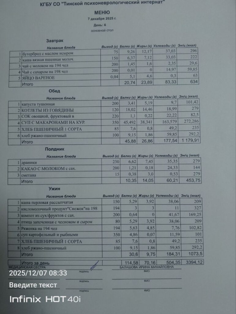 • Питание за 07.12.2025