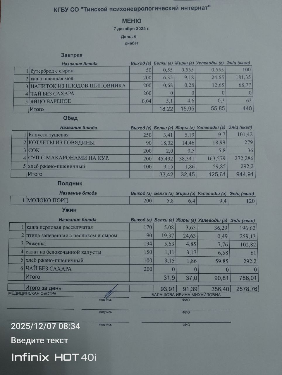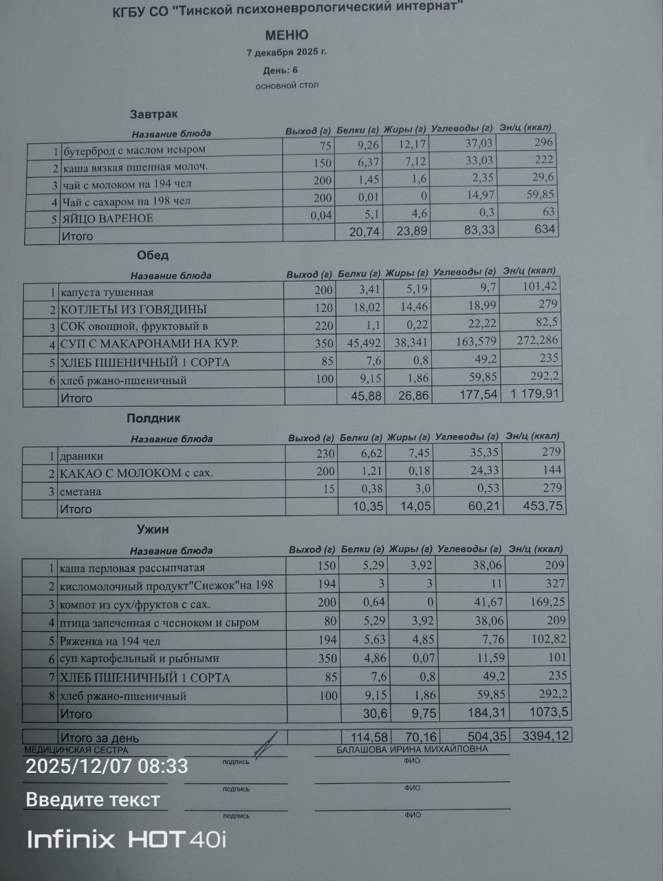 • Питание за 07.12.2025