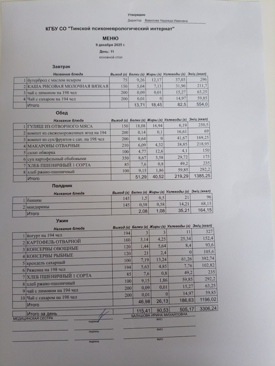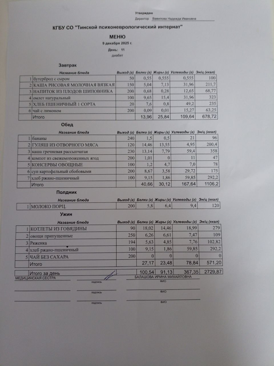 • Питание за 09.12.2025