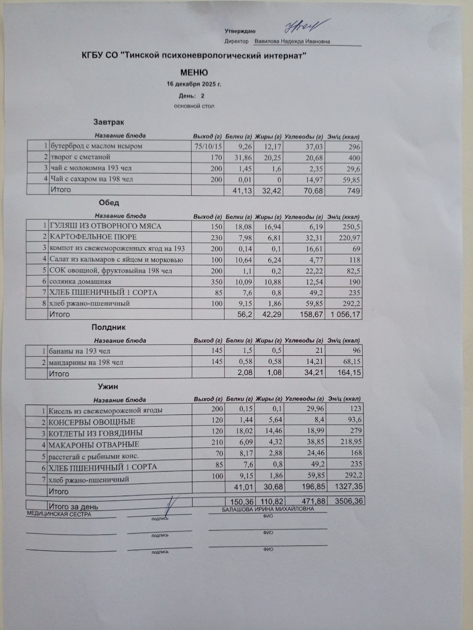 • Питание за 16.12.2025