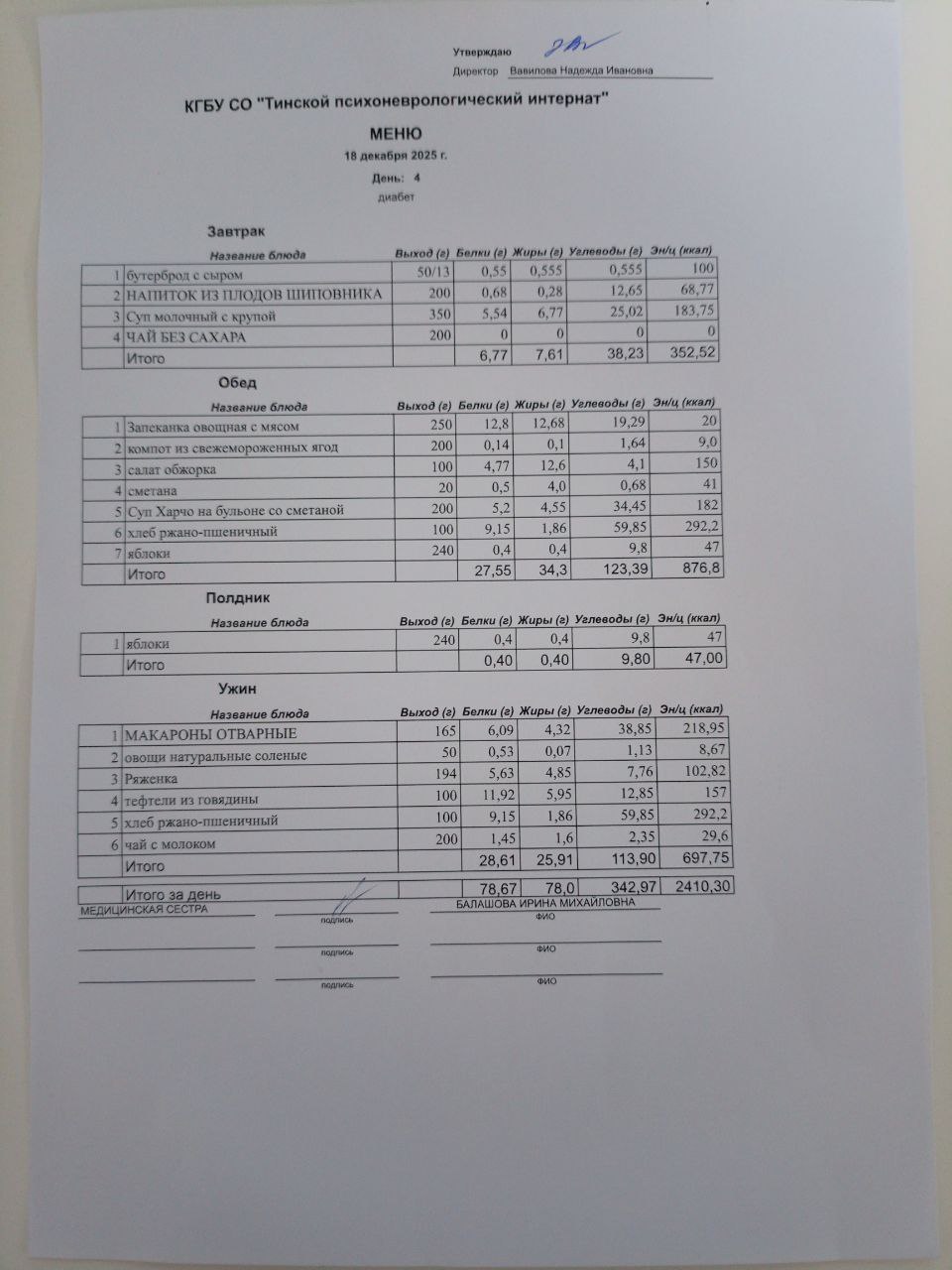 • Питание за 18.12.2025